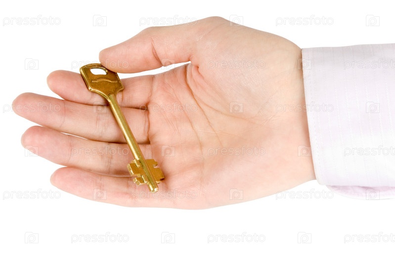 Золотой ключ в руке изолирован на белом