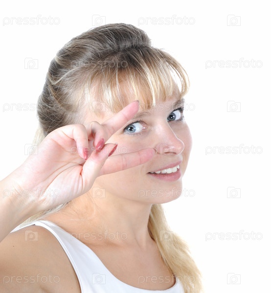 Ближайшее изображение красивой молодой женщины на белом фоне