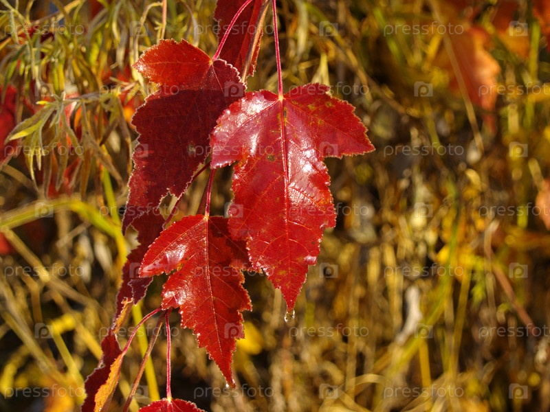 Красные кленовые листья солнечным утром