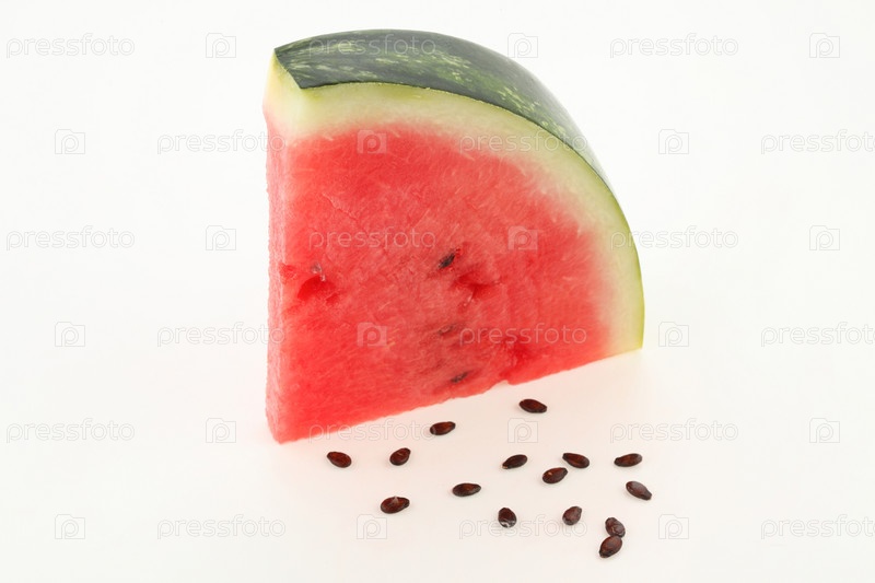 Ломтик арбуза с семечками на белом фоне