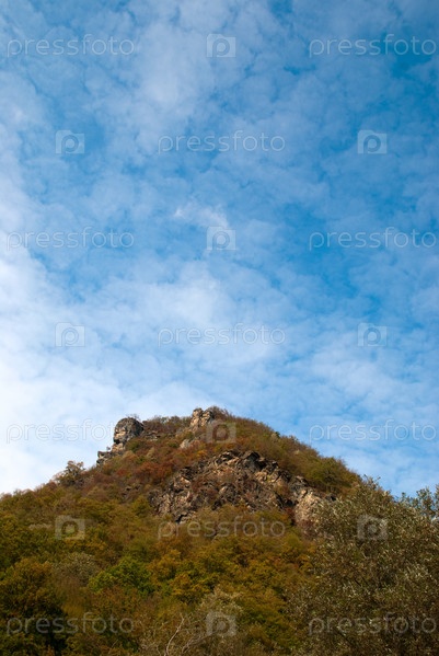 Горная вершина под голубым небом с облаками