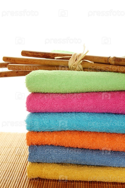Бамбуковые палочки на стопке цветных махровых полотенец