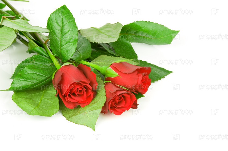 Три розы на белом фоне