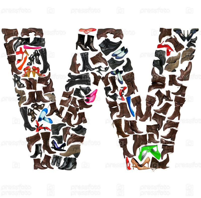 Буква W, сделанная из женской обуви