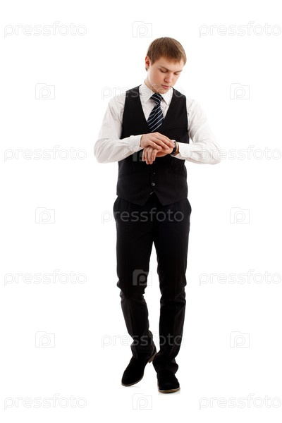 Молодой человек смотрит на наручные часы