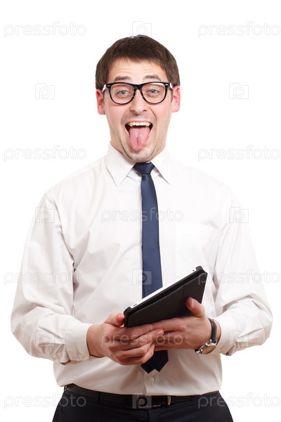 Веселый бизнесмен с папкой в руках
