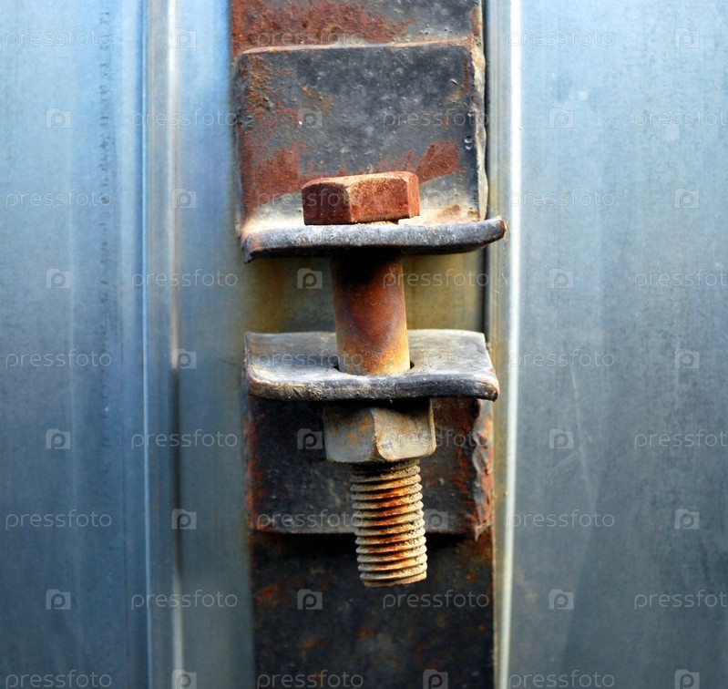 Ржавый винт и орех промышленного строительства на близком расстоянии