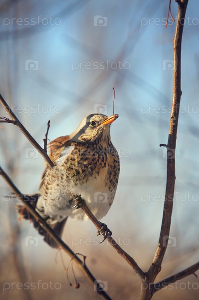 Дрозд, сидящий на ветке
