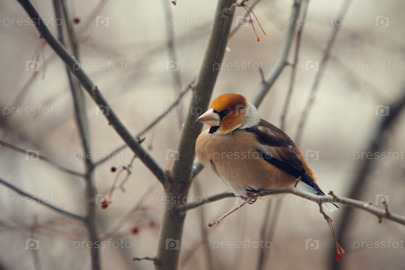 Дубонос, сидящий на ветке