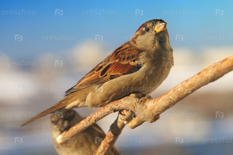 Воробей, сидящий на ветке