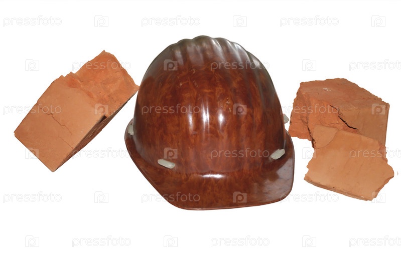 Сломанный кирпич и строительная каска