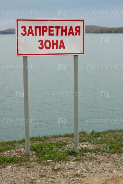 Знак "Запретная зона" на берегу озера