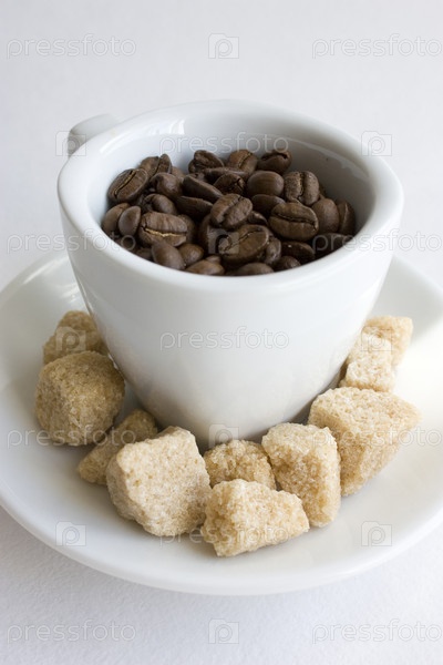 Кружка с кофейными зернами и сахар