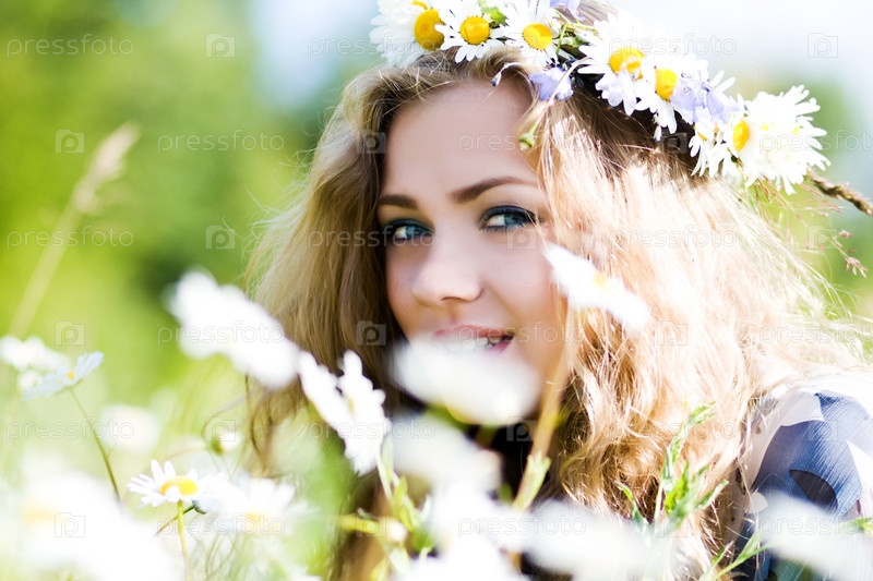 Портрет красивой блондинки в цветочном венке