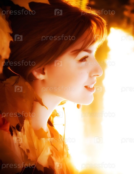 Молодая девушка в осенних листьях