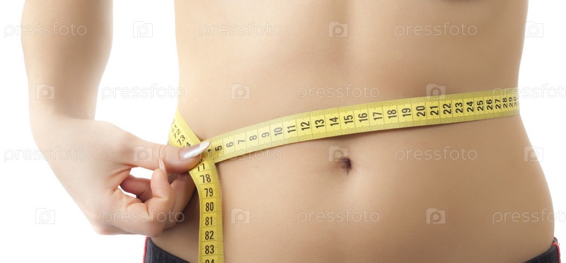 Женщина меряет талию сантиметровой лентой