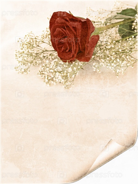 Винтажная открытка с красной розой