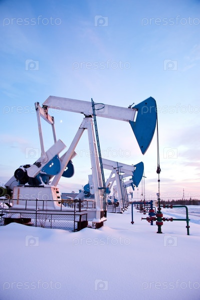 Нефтяные насосы на фоне заката