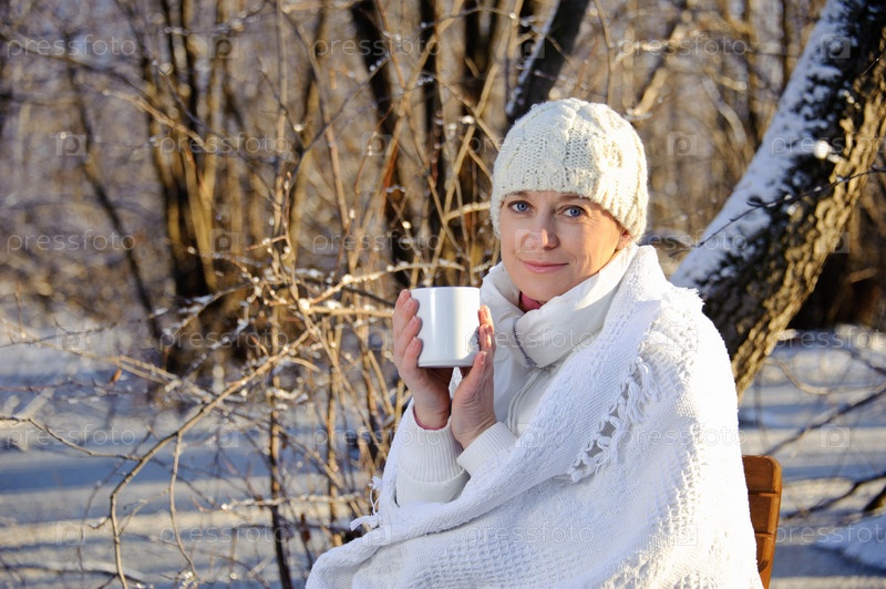 Красивая женщина на природе с чашкой в руках