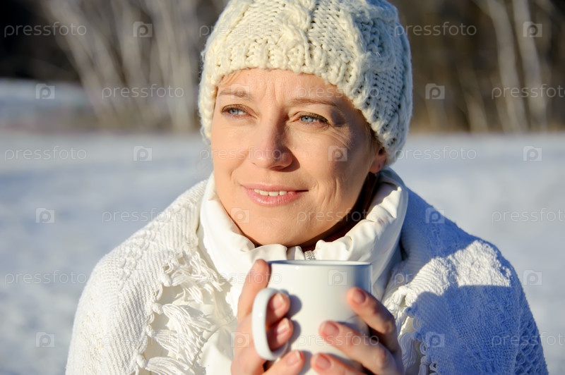 Красивая женщина на природе с чашкой в руках