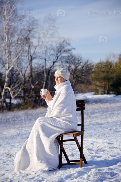 Красивая женщина на природе с чашкой в руках
