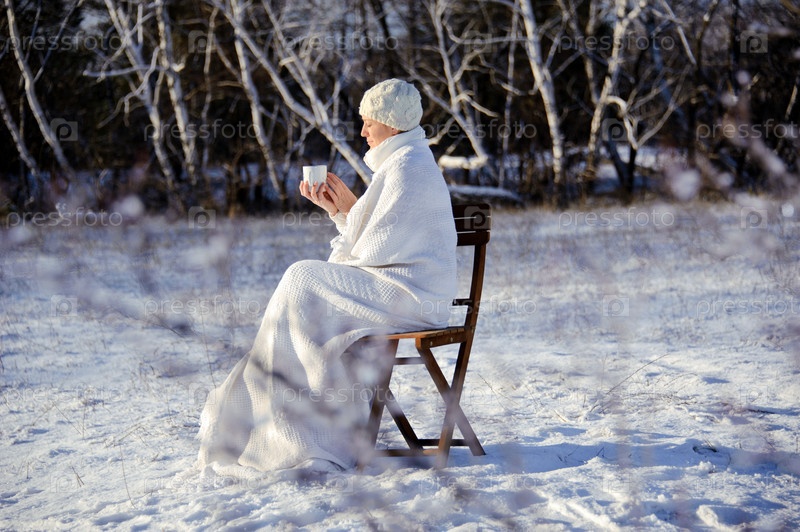 Красивая женщина на природе с чашкой в руках