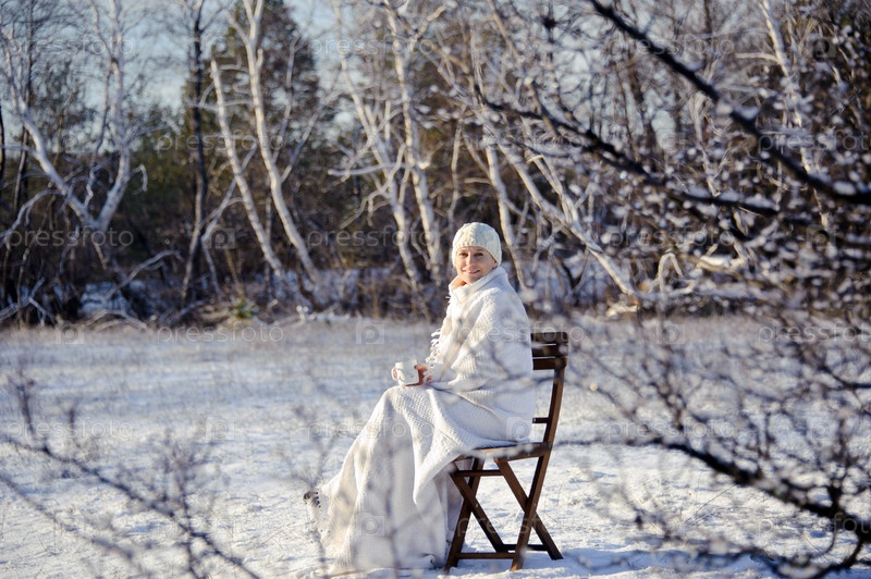Красивая женщина на природе с чашкой в руках