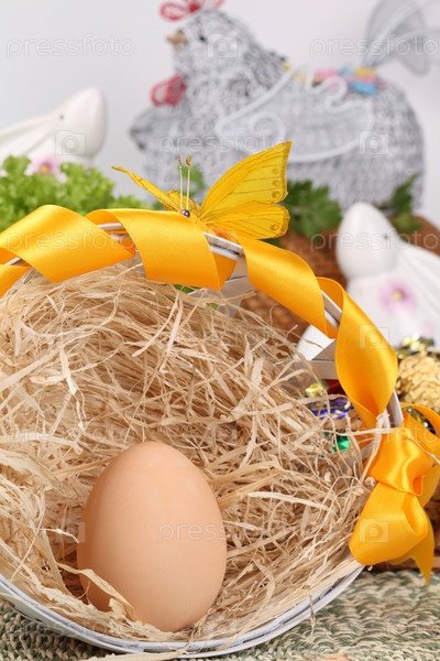 Яйцо в гнезде и украшения к Пасхе