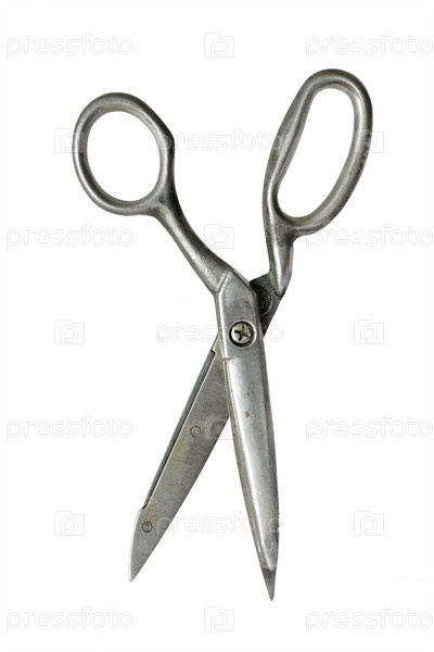Старые металлические ножницы на белом фоне