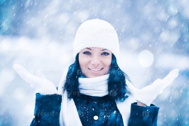 Улыбающаяся девушка в зимнем парке