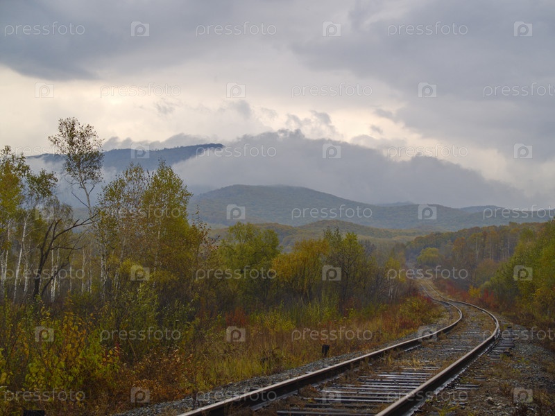Железная дорога вдоль осеннего леса