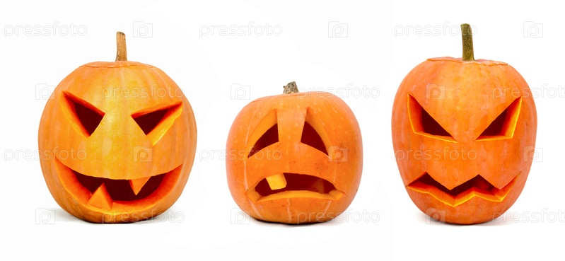 Три эмоциональные тыквы на белом фоне