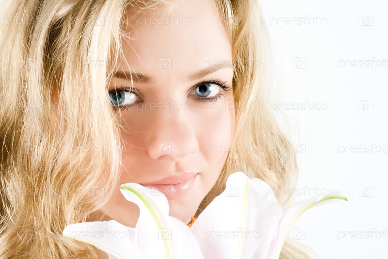 Портрет красивой блондинки с белой лилией