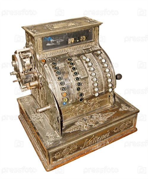 Старый кассовый аппарат, изолирован на белом фоне