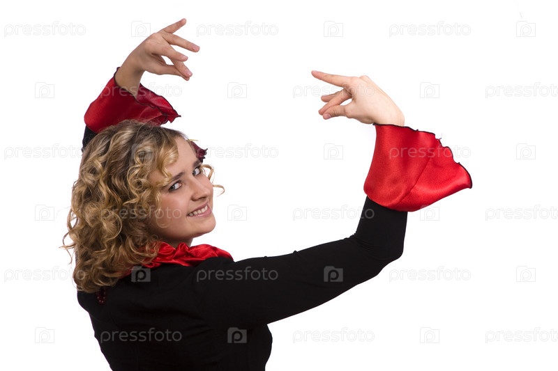 Женщина в роскошном платье на Хэллоуин. Танцоры в национальных испанских костюмах. изолированы на белом