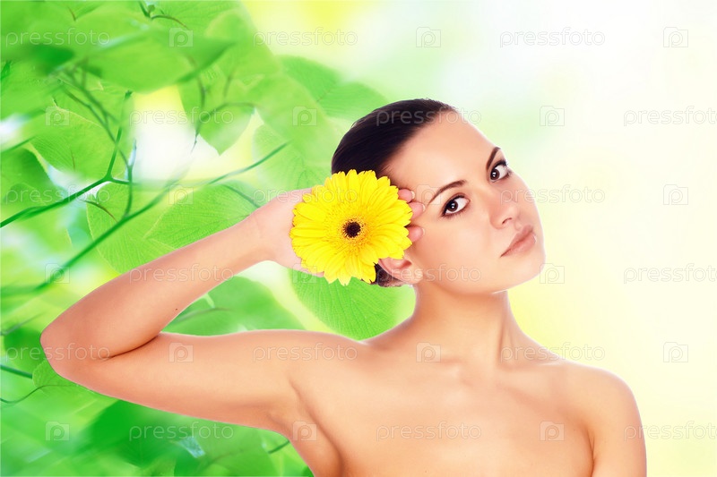Портрет свежей и красивой женщины с цветом, изолированным на белом