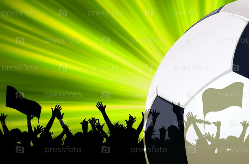 Иллюстрация с мячом и футбольными фанатами