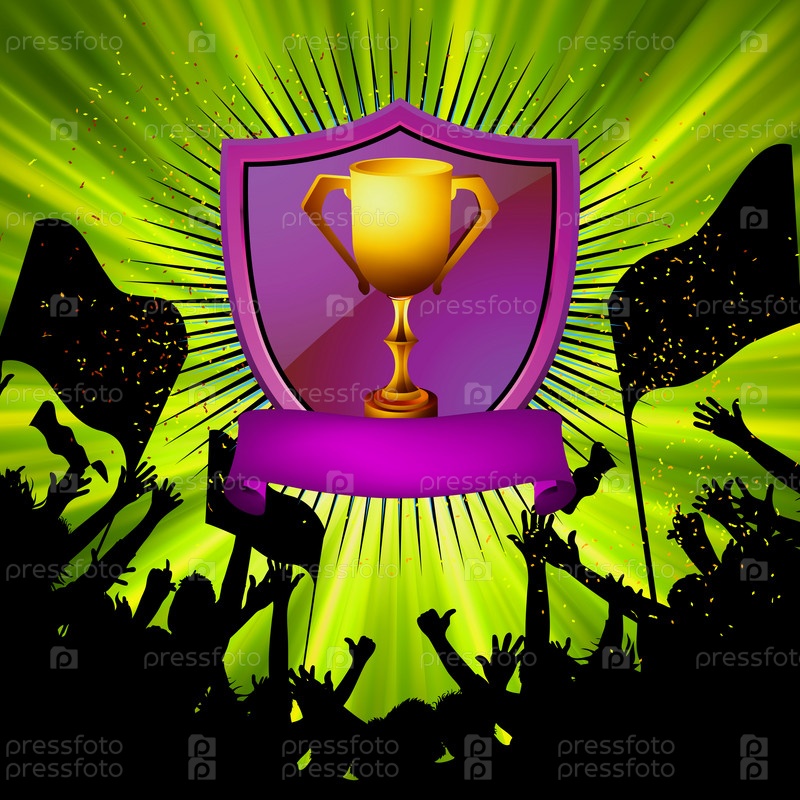 Иллюстрация с кубком и футбольными фанатами