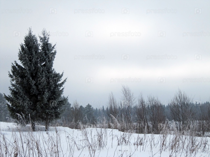 Ели в февральский пасмурный день