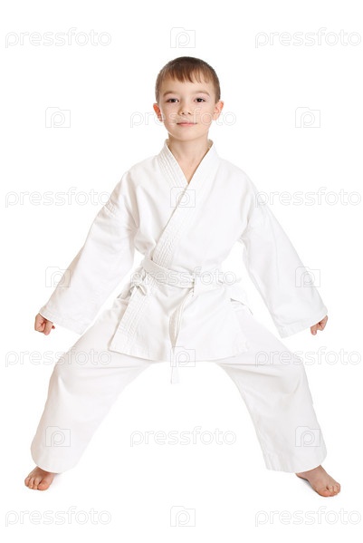 Мальчик в кимоно на белом фоне
