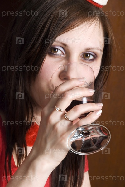 Молодая женщина пьет вино