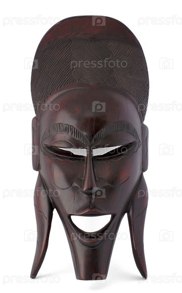 Африканская традиционная деревянная маска на белом фоне