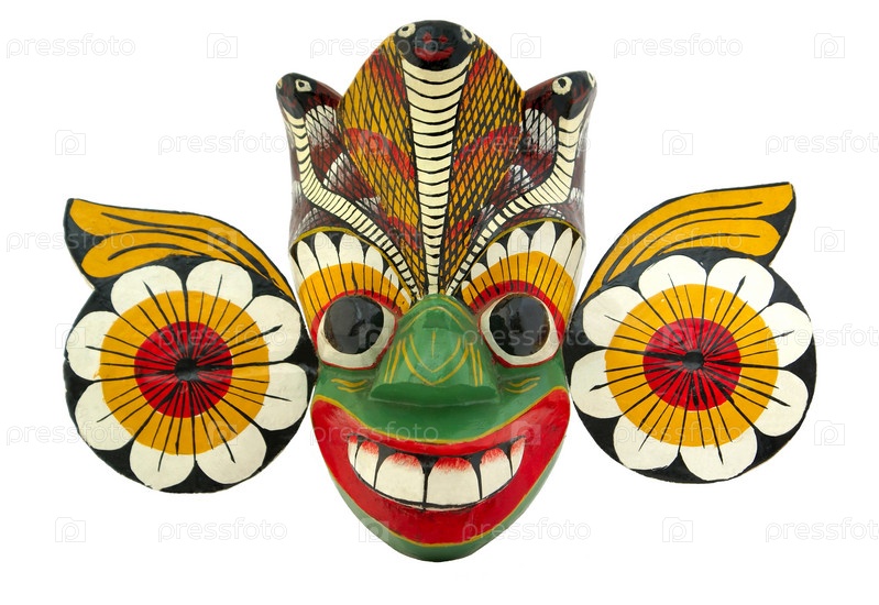 Шри-Ланкийская традиционная деревянная маска на белом фоне