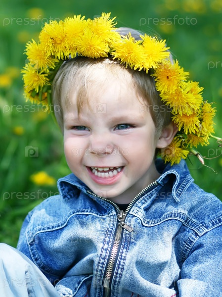 Счастливый ребенок с венком на голове