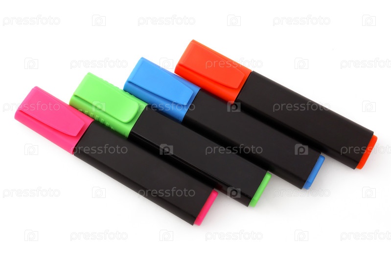 Четыре разноцветных текстовых маркера на белом фоне