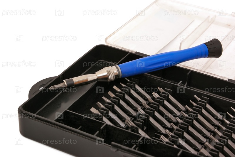 Отвертка на коробке со съемными наконечниками
