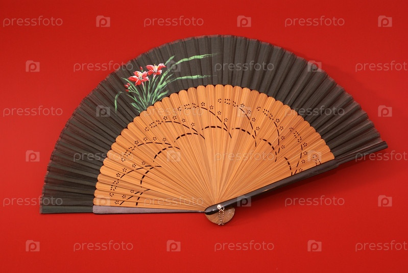 Восточный традиционный веер на красном фоне