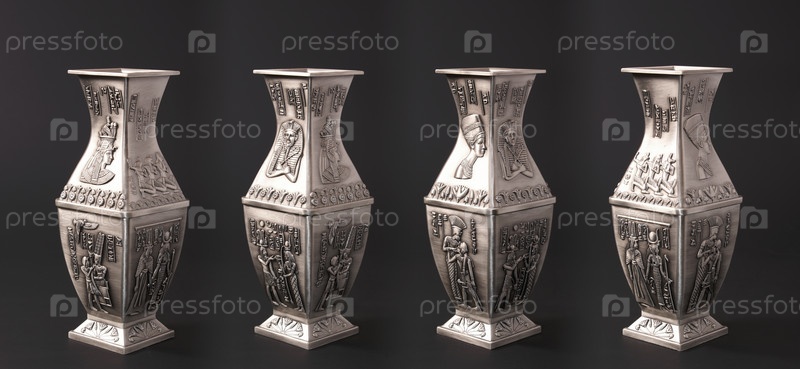 Четыре египетские вазы выделяют черный фон