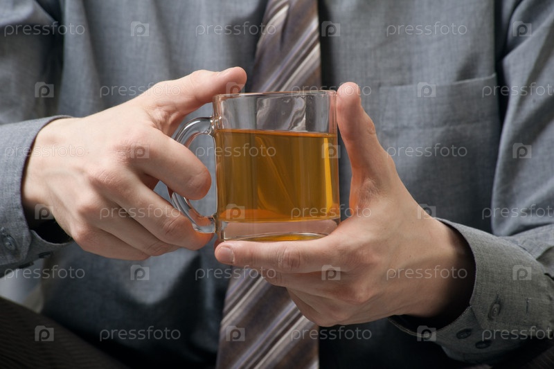 Крупным планом чашка зеленого чая в руках бизнесмена