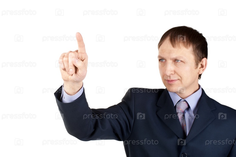 Портрет бизнесмена, нажимающего воображаемую кнопку